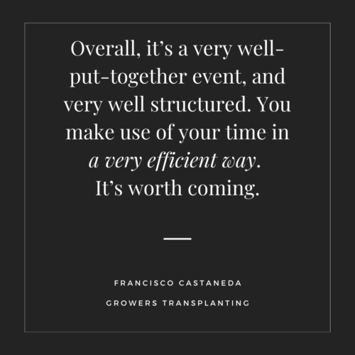 After two full days of pre-arranged meetings and social functions with executive business partners sourced specifically to meet the unique challenges, strategic initiatives, and short- and long-term goals of the grower participants, growers leave GreenhouseCONNECT with new business relationships, custom solutions and follow-up plans to put what was discussed into practice.